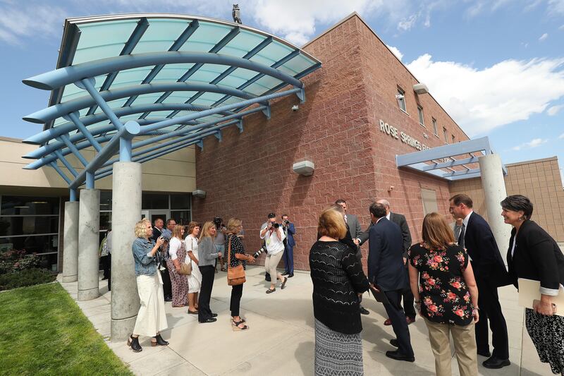 STANSBURY PARK — Gov. Gary Herbert watched a demonstration of the Won-Doors at Rose Springs Elementary School in Stansbury Park on Wednesday, a system that can wall off areas of a school at the push of a button.
