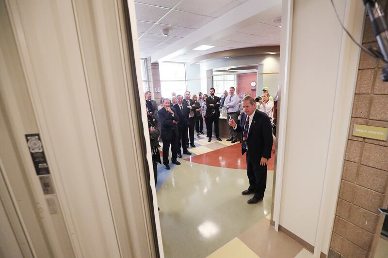 The newly renovated school, which serves about 430 students, has some of the latest safety features statewide, including a video doorbell that requires visitors to present ID to gain entry and a network of surveillance cameras.
