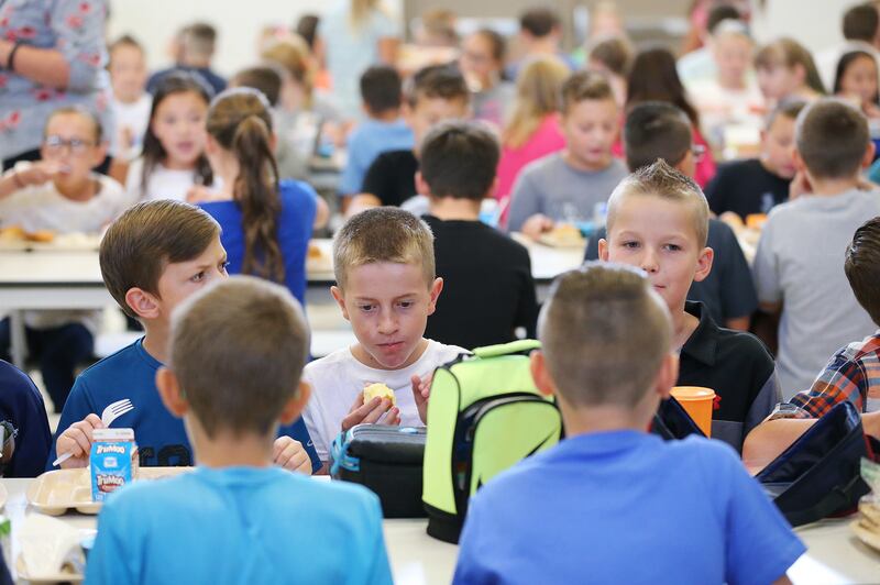 Earlier in the day, Herbert ate lunch with students, working his way around the room to greet them with high-fives and words of encouragement for a successful school year.