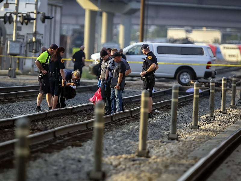 "It looks like he squatted down and tried to roll underneath it, like in the movies or something," Amott said. The train, on the middle track, was not moving fast, probably at 15 mph, police said.