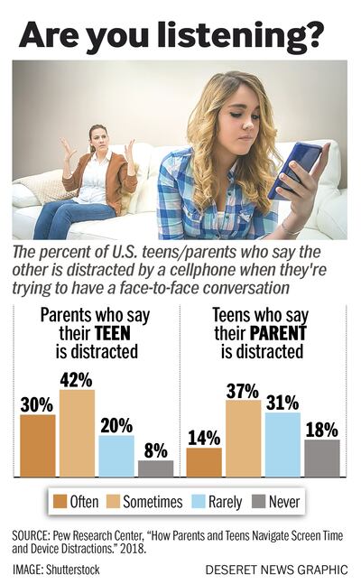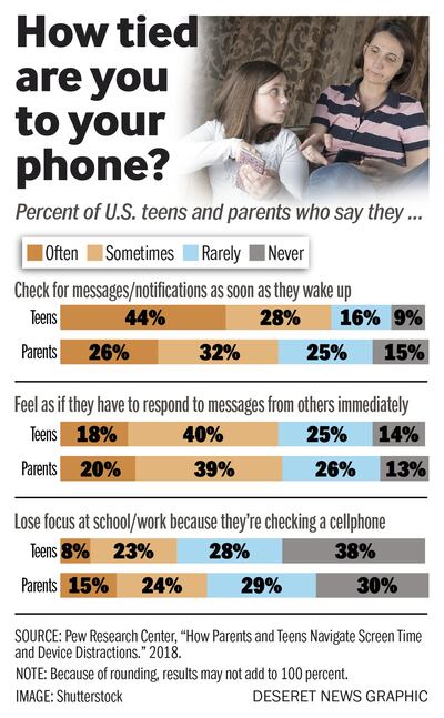 SALT LAKE CITY — A new study shows it's teens — not parents — who more often admit they spend too much time on their cellphones and are taking steps to curb their tech use.