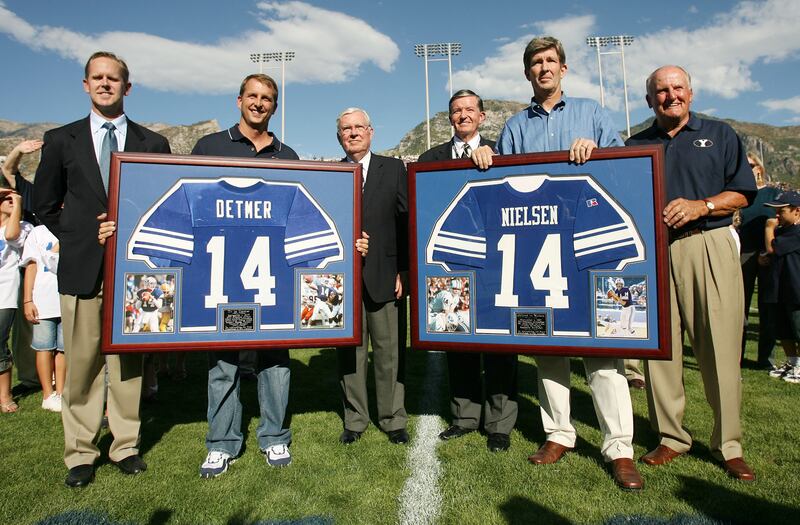 “Everybody makes a big deal about the extra pressure of playing quarterback at BYU. I don’t agree with that,” Elder Nielsen said. “I think you honor the history but then create your own history. Every quarterback that’s played there, we’re cheering this new crop of quarterbacks on. We’re not asking them to compare to us. We’re asking them to do what they can do. They have come to BYU to represent the university and the program. If they decide that they want to put more pressure on themselves by being the quarterback at BYU, they probably shouldn’t be the quarterback at BYU. Establish your own career. Just know that we all care.”