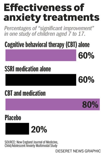 When cognitive behavioral therapy or medication is used alone, the effectiveness rate drops to 50 or 60 percent, she said.