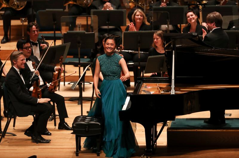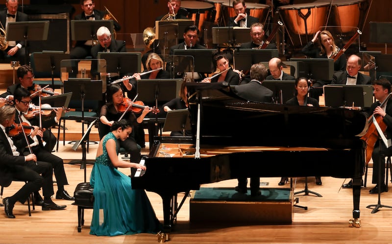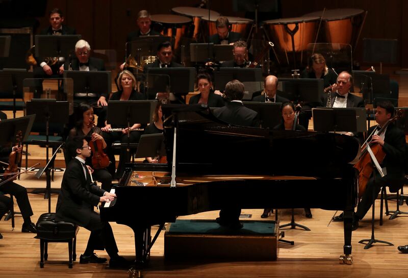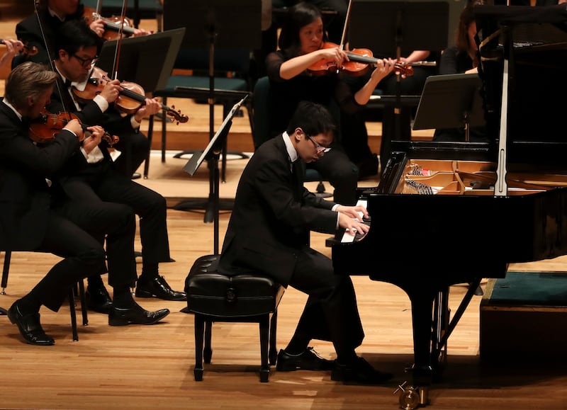 Prior to his performance, 16-year-old pianist John Zhao said he loved “playing every note” of the first movement of Pyotr Ilyich Tchaikovsky’s “grand” Piano Concerto No. 1. What he didn’t mention was how many notes the piece entailed. From start to finish, Zhao’s fingers ran a marathon of notes, moving rapidly up and down the keys through a series of double octaves and arpeggios.
