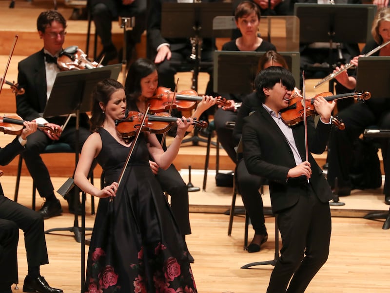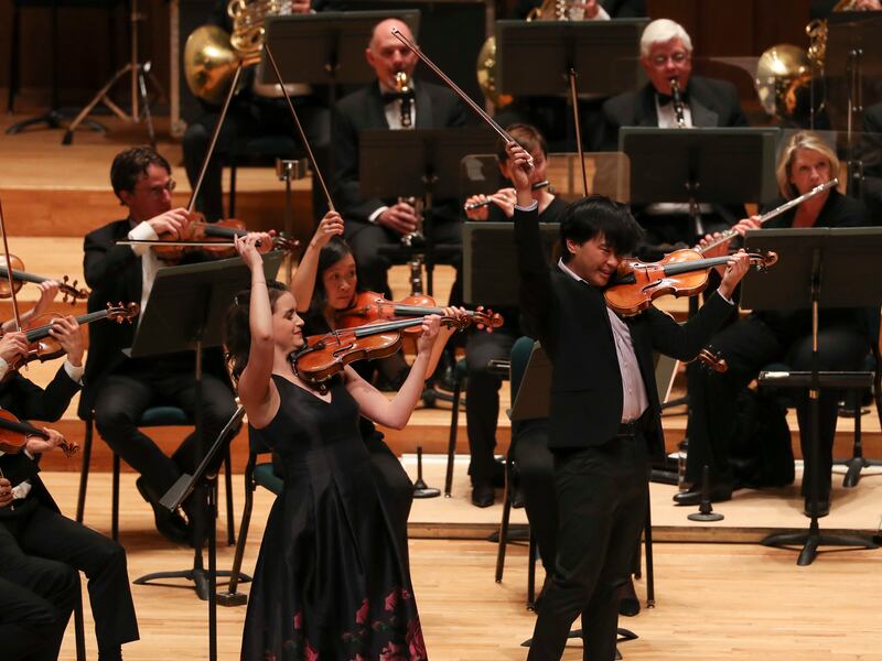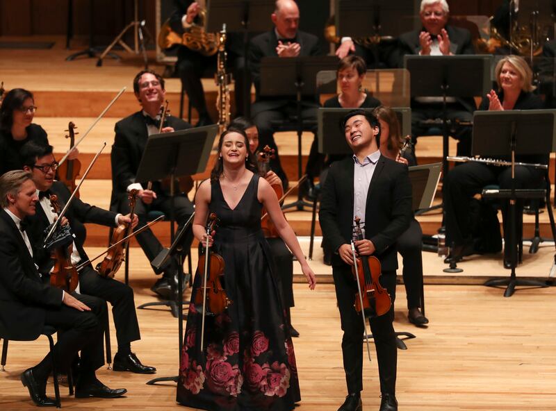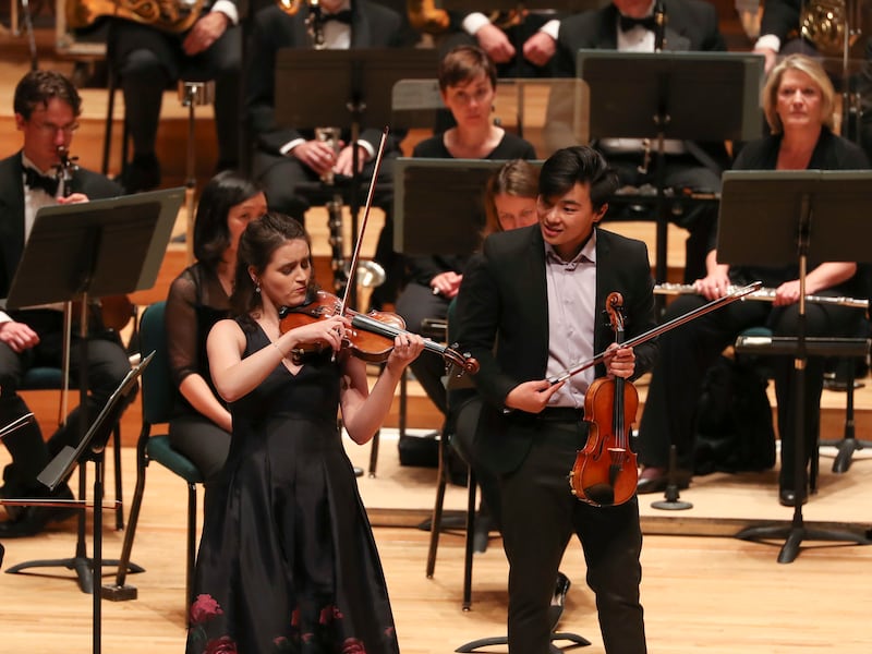 While Wu refrained from waving his arms, he did give the audience a sassy look as 18-year-old violinist Natalie Boberg slid into her first note of the piece, a jazzy start for a jazzy piece. It was a fiery fiddling duel that offered a dynamic end to the concert’s first half.