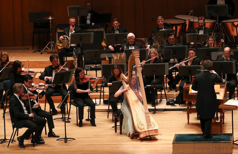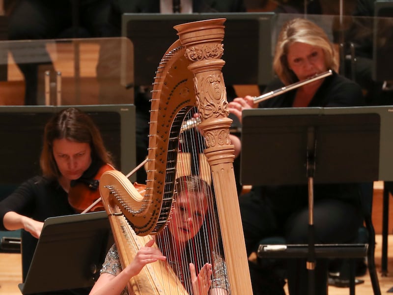 Erika Rosen, a 17-year-old harpist from Murray, performed the evening's final harp number, playing a transportive rendition of Gabriel Pierne's cinematic “Concertstruck.” With the orchestra's swelling strings behind her, Rosen took center stage with dramatic arpeggios and runs fit for a romantic scene from a classic film.