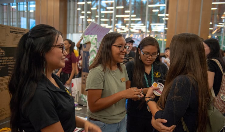 The questions ring out from upperclassmen stationed in front of colorful posters. They're at tonight's "Passport to ASU" event to attract new members for their favorite student clubs, so they offer friendly smiles and free pieces of candy.