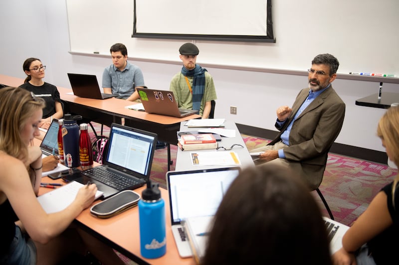 Carrese's in a blue button-down shirt and brown blazer, appearing better suited to the U.S. Air Force Academy, where he taught for nearly 20 years, than sunny ASU. He gathers his 10 students around a single, rectangular table in the large, basement classroom and talks about the joy of learning, especially on a campus far from home.
