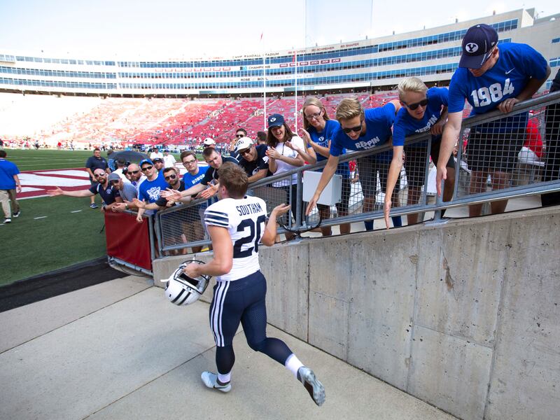 Meanwhile, Wisconsin senior placekicker Rafael Gaglianone missed a 42-yarder with 41 seconds remaining. Had the ball gone through the uprights, the game likely would have gone into overtime. Instead, it missed, touching off a joyous celebration on BYU’s sidelines.
