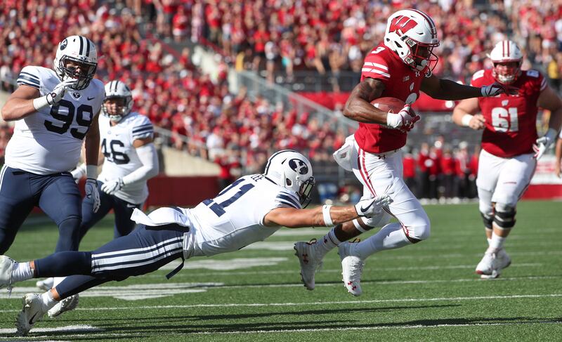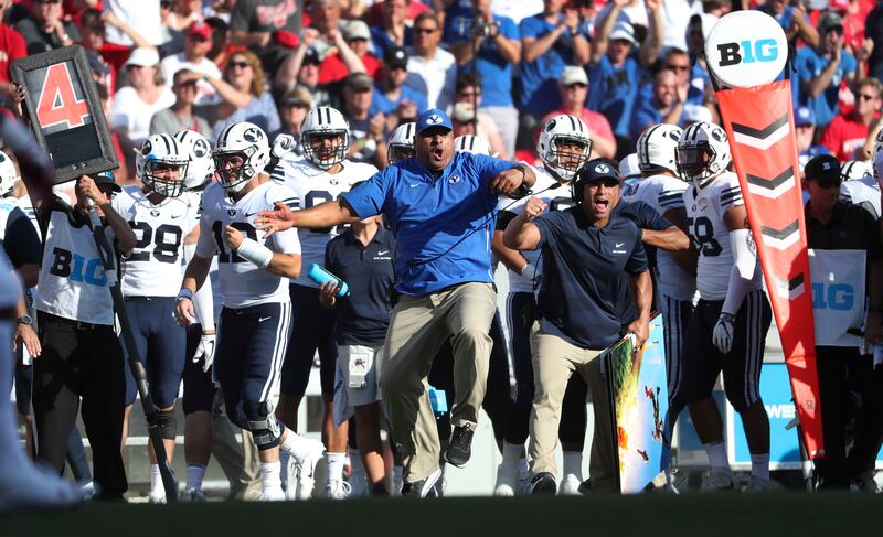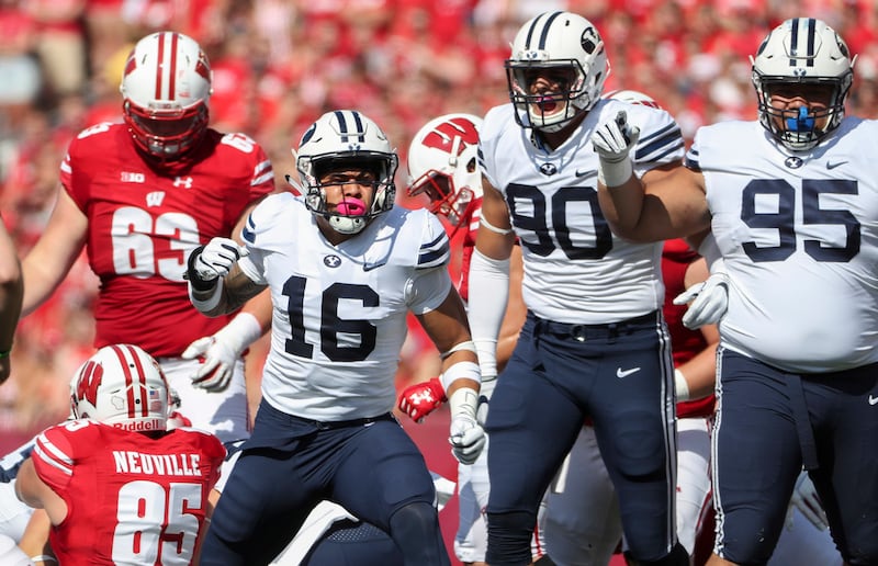 “I have a lot of respect for Wisconsin’s program. I’ve talked about the smash-mouth style of football that they play,” said coach Kalani Sitake. “We pattern what we do as a team after what they do. I’m really excited we came out with the win but more than anything, I’m excited that our guys were a lot more physical than we were last year.”