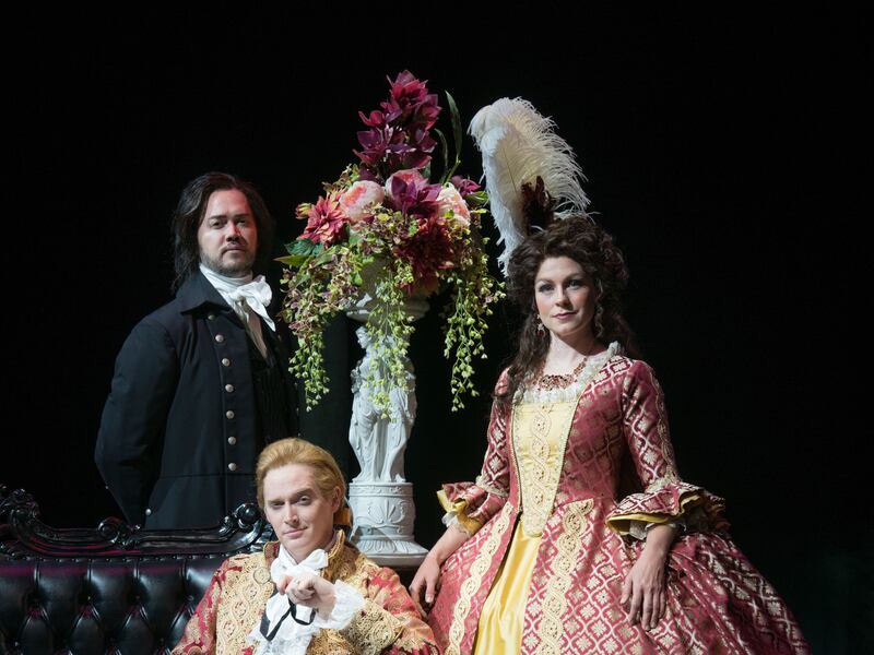 By contrast, Chauvelin the villanous rogue, wore the plain black popular in the new French republic — fodder for the flamboyant and fashionable Percy. Seemingly aloof and detached in the brooding role, Dietlein’s passion was unearthed only when lost in song — where he certainly shone. Unfortunately for him, as for the other members of this talented cast, the music was overall unmemorable.