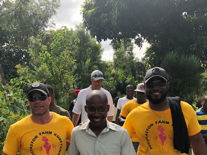 During the trip, the Steelers' head coach was filmed handing an advance copy of Ballard's new book, "Slave Stealers: True Accounts of Slave Rescues Then and Now" (Shadow Mountain, 256 pages, $26.99), to Guesno Mardy, a Haitian man who started working with the organization after his son Gardy was kidnapped a few years ago. Ballard's desire to help find Mardy's son helped motivate him to launch his rescue foundation.