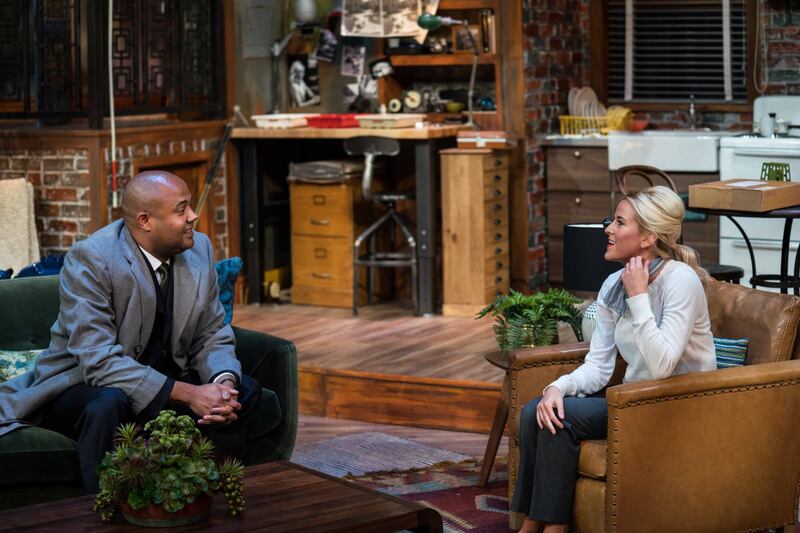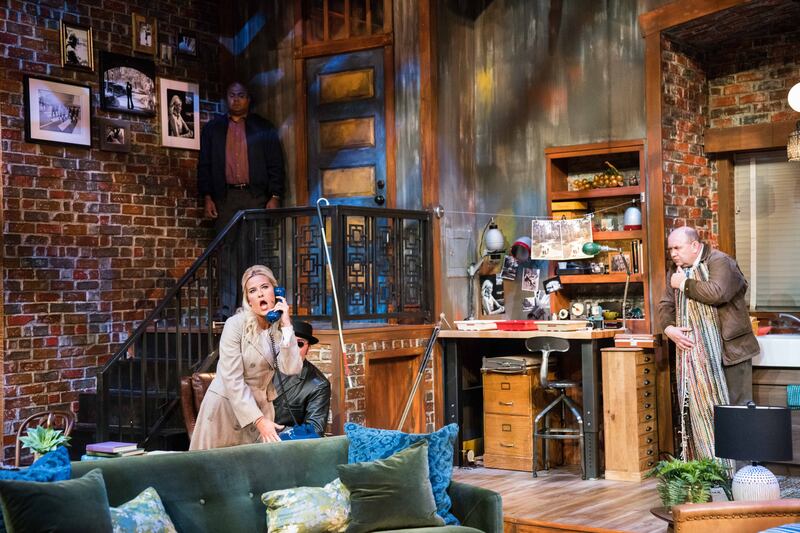 The Monday night performance opened on a bright, cozy, well-lit New York apartment, full of mid-century comforts and warm colors that looked as hip now as they would have in the play's 1960s setting. The apartment is the home of Susy and Sam Hendrix, a young couple as hip as their decor — he's a photographer and she is well-dressed — but it soon becomes clear that their happy home will shortly be disturbed.
