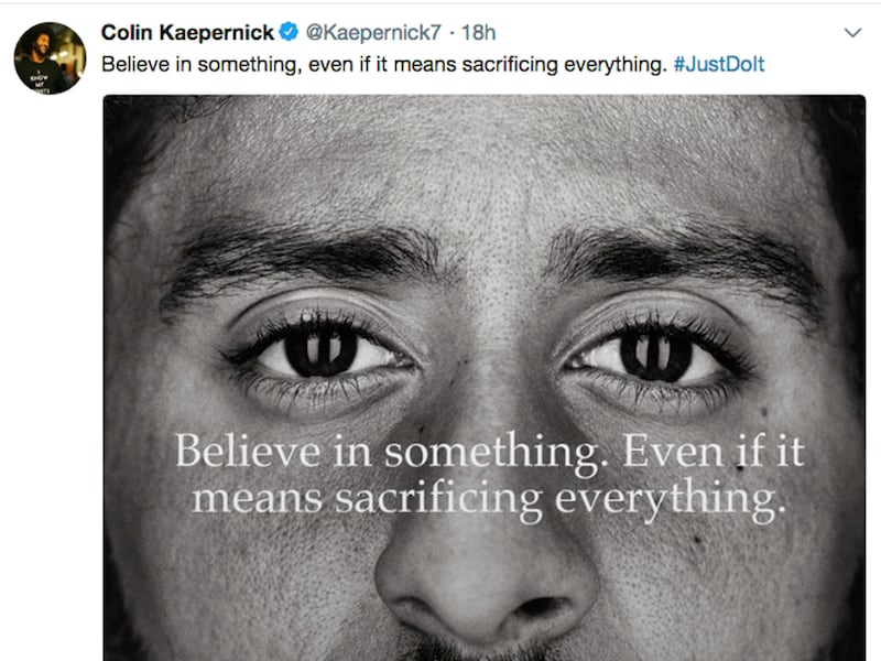 Campbell also said it’s unlikely the ad will change anyone’s opinion. “To some people, Kaepernick was doing the right thing and being brave; to others, he was disrespectful. I don’t know that this will change their minds one way or the other. It’s just going to reinforce whatever they were thinking.”