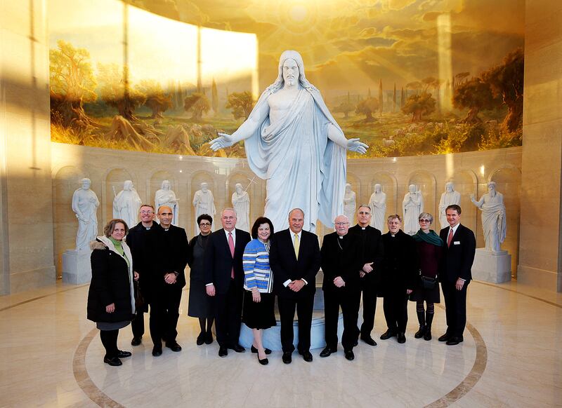 "The delegation from the Catholic Church came today at our invitation," Elder Rasband said. "They said they came to the temple to learn. They wanted to learn about what we do in both our meetinghouses and in our temples. And they were wonderful. They were friendly. They acknowledged our partnership and our working together around the world on social issues like freedom of religion in the public square. They complimented us especially on the relationship we have with the Catholic Church in America and said that they'd like to have a continuing relationship with us here in Europe."