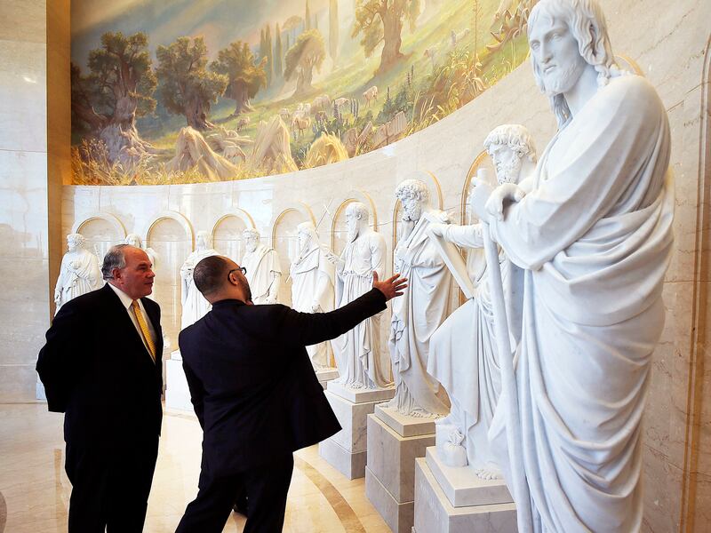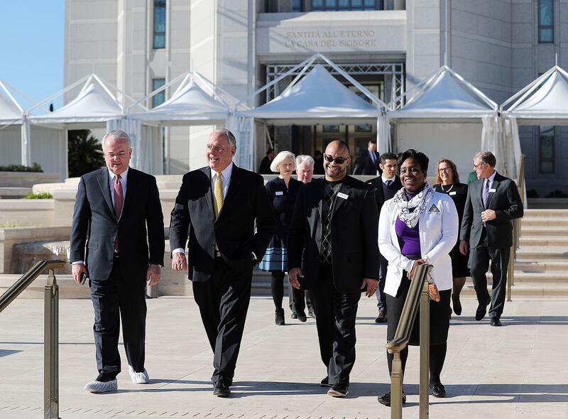 Elder Ronald A. Rasband of the Quorum of the Twelve Apostles led the tour with Elder Jack N. Gerard, a General Authority Seventy. They, along with Elder David A. Bednar of the Twelve and other church leaders, are leading tours this week for dignitaries prior to the temple's public open house, which will be held Jan. 28-Feb. 16, excluding Sundays.