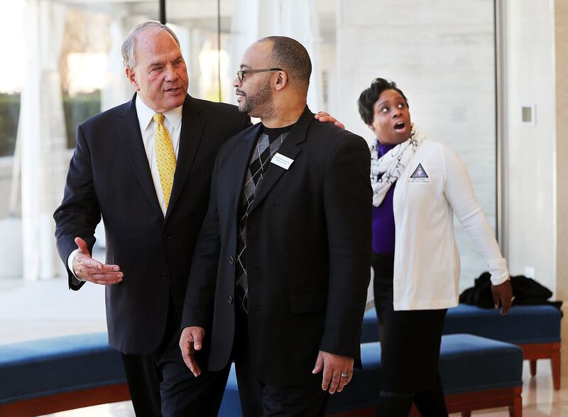 Elder Rasband became emotional on Tuesday as he hugged the Rev. Dr. Chris Zacharias, pastor of the John Wesley A.M.E. Zion Church in Washington, D.C., after leading him through the temple. Dr. Zacharias described his new relationship with Elder Rasband as "eternal."