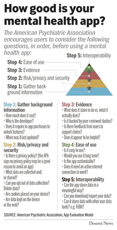 The American Psychiatric Association and The National Institute of Mental Health have taken a different approach by encouraging users to ask questions of their apps before using them.