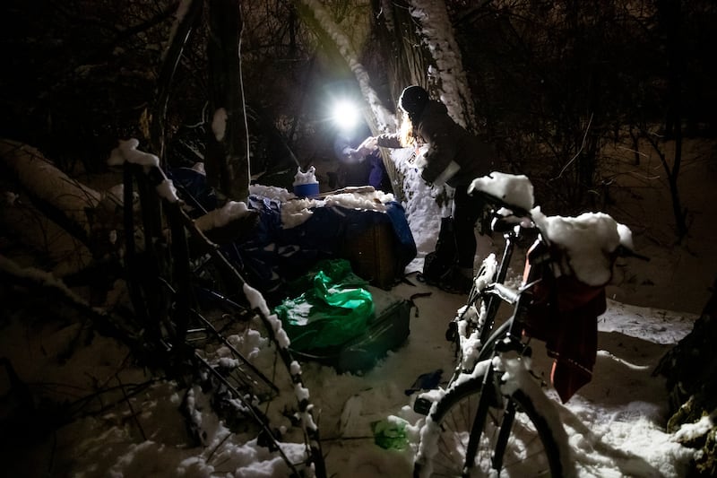 Later, as 6 a.m. approached, Pyper found one of her clients, Paul, sleeping in a tent behind an auto shop, also near the Jordan River. He and his friend nicknamed "Junior" completed the survey.