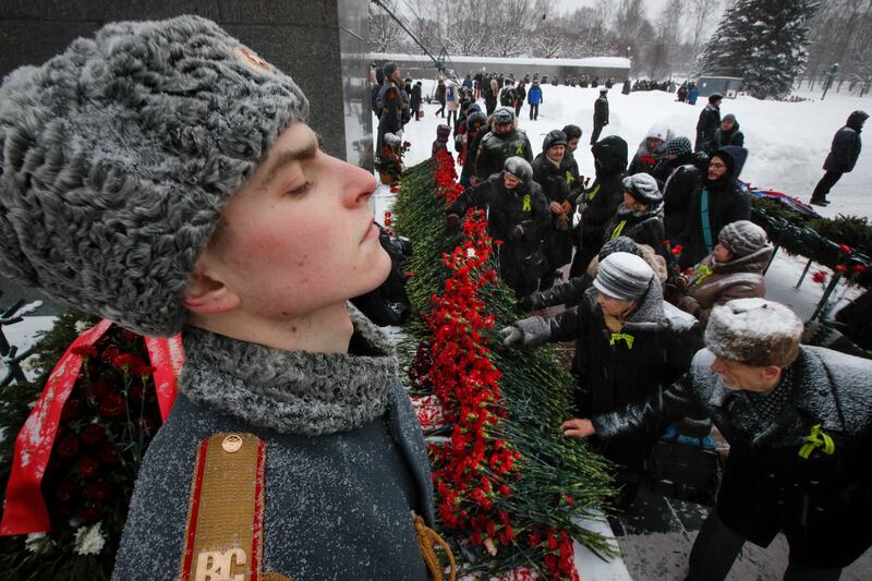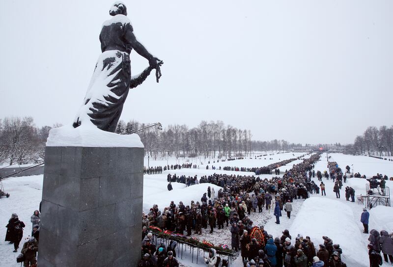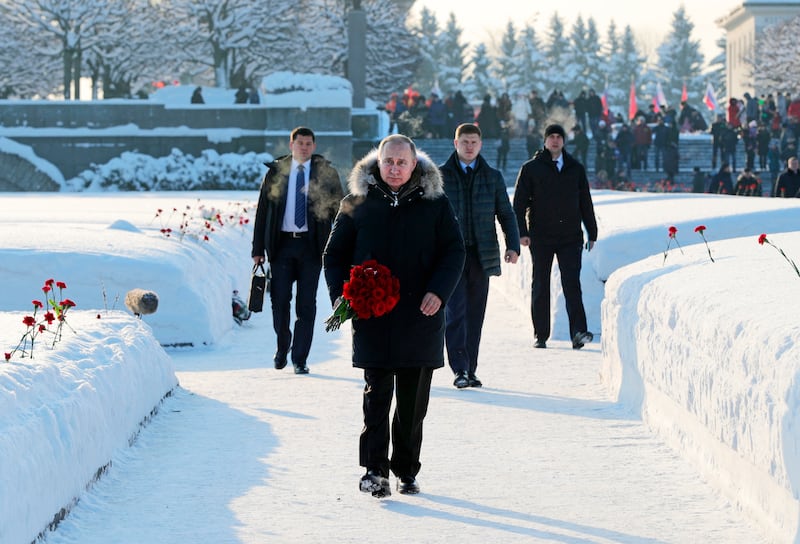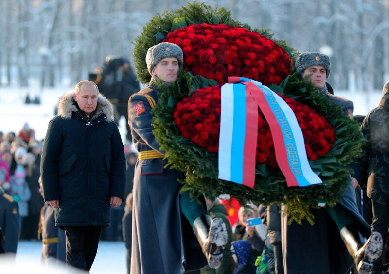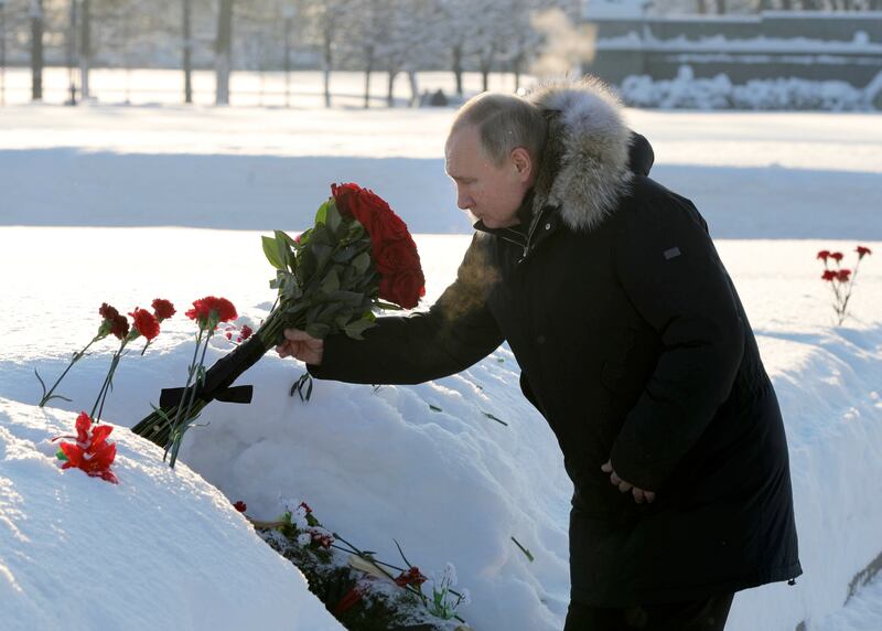 Russian President Vladimir Putin later laid flowers at a monument in Piskarevskoye Cemetery, where hundreds of thousands of siege victims are buried.