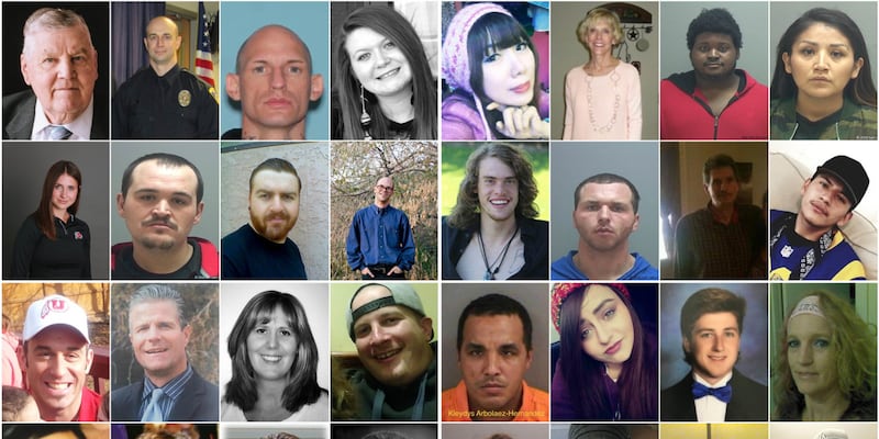 45. OGDEN, Aug. 16 — Brian Racine, 28, was staying at a homeless camp in Ogden near 500 West and 21st Street when he was found dead from a gunshot wound. He had moved to Ogden from California about a month before, police say. Dalton James Aiken, 28, and Cory Michael Fitzwater, 35, have both pleaded not guilty to murder charges. Aiken allegedly told police the two went to the homeless camp to "find and harass homeless people." Motive: Unknown Method: Shooting