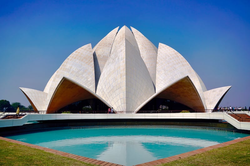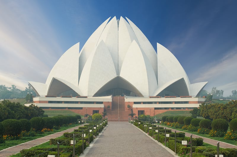 One of the most stunningly beautiful religious uses of the lotus in art appears in the famous Lotus Temple in Delhi, India, a Bahai “House of Worship” that was completed in 1986.