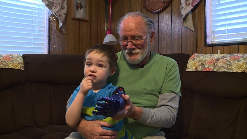“That’s his robot arm,” Buckland said with a laugh as he held Robert in his lap to play with the arm.