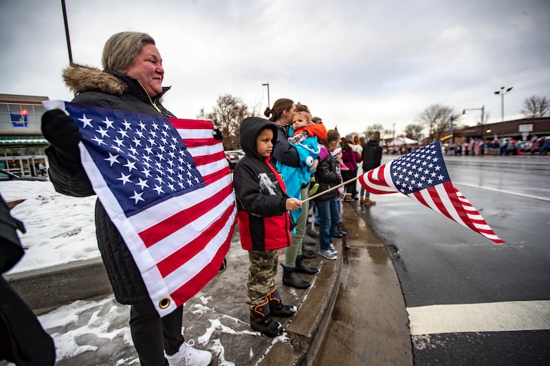 There were hundreds of American flags along the route, some held by small children and others by adults who stood in the cold to honor Shinners, 29.