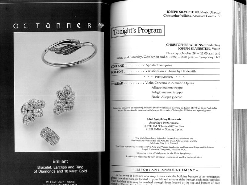 The first open rehearsal took place Oct. 29, 1987, and featured Silverstein performing the Dvorak Violin Concerto, according to an old program. After being discontinued for a time, the event was reinstated by former Utah Symphony & Utah Opera CEO Ann Ewers in the early 2000s. Anderson, who moved to Utah in 2004 and has macular degeneration, appreciates the convenience of the Finishing Touches series.