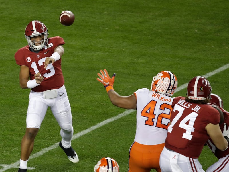 Tagovailoa, the sophomore who came off the bench to win the championship game last year for the Tide, went 22 for 34 for 295 yards and two touchdowns.