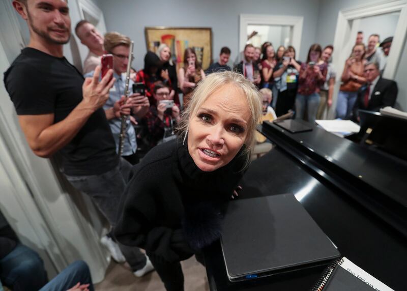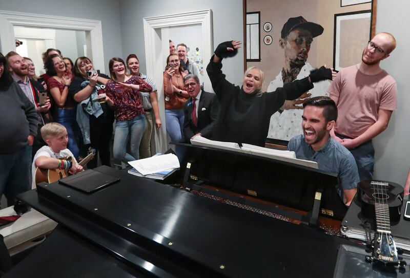 As the wind picked up in downtown Salt Lake City Thursday night, Chenoweth stepped into the two-story Encircle LGBTQ+ Family & Youth Resource Center. She was 15 minutes late. By the time she got there, a few dozen people were gathered around a piano singing “This is Me” from “The Greatest Showman.”