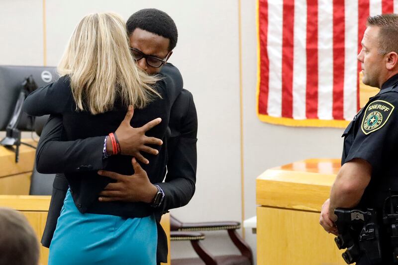 “I love you as a person. I don’t wish anything bad on you,” he said to the 31-year-old Guyger, before asking the judge, “I don’t know if this is possible, but can I give her a hug?”