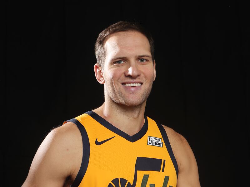 Bogdanović can score in multiple ways. He’s a solid 3-point shooter. His 42.5 percent from deep last season was better than Klay Thompson’s and trailed Steph Curry’s by 1.2 percentage points, though he took considerably fewer 3s than the Splash Brothers. He can also hit mid-range shots and drive to the hoop. His scoring abilities, as Exum noted, aren’t in doubt. Mitchell seconded Exum’s assessment, adding that he’s joked that Bogdanović is going to shoot 100 percent from behind the arc.