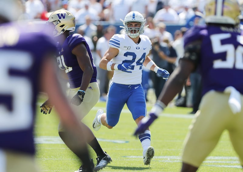 He played on special teams in 2018 and 2019. During the fourth week of the season coaches moved him again, to field-side linebacker. Besides special-teams duty, he played two defensive plays against Washington and had one tackle. He is also part of BYU’s so-called scrum package, which calls for him to play quarterback in a stacked backfield. In a win over USC he handed off for a goal-line touchdown. The search for playing time continues.