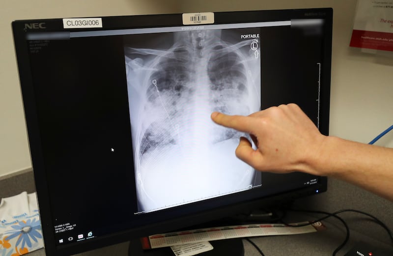 Their CT scans reveal a haziness that looks like a blizzard — what Harris believes to be the toxic reaction, inflammation and swelling.