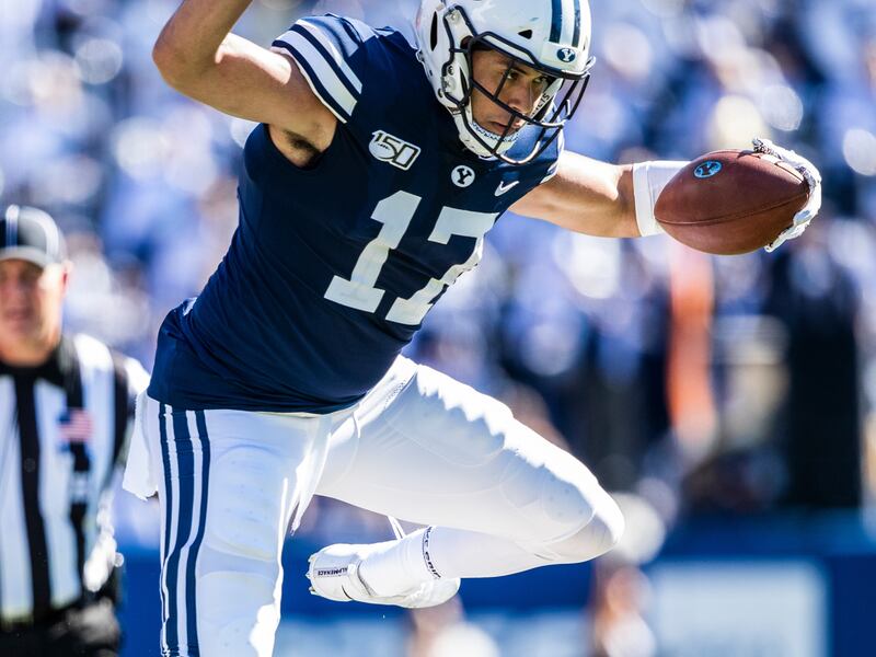 He didn’t record a stat in BYU’s 51-28 win in 2015 when he was a freshman returned missionary and caught just one pass, for 15 yards, in the Cougars’ 28-10 win in 2016 in Provo.