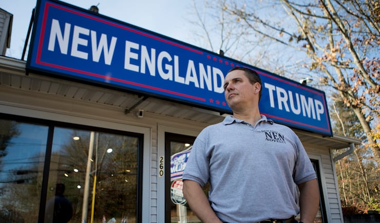 For Keith Lambert, owner of a Rhode Island-based novelty business, the right location for the past couple of weeks has been a vacant lot at an intersection in Mendon, a town of about 6,000 people, an hour from Boston. There, his pop-up Trump shop, open only sporadically, has seen steady traffic, and the occasional expletive shouted from a passing car.