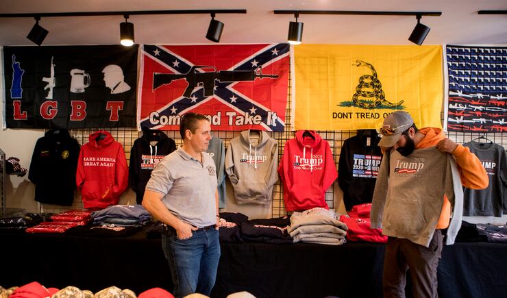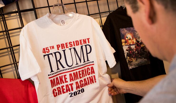 “Most of them, though, give us a thumbs-up,” Lambert said, which explains why, a year out from the 2020 election, he is opening three stores where people can buy Trump merchandise all week.