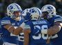 Shumway certainly shined, catching five passes for 41 yards and two touchdowns in his final home game. Actually, BYU’s receivers were solid — there were no egregious drops. The same can’t be said for the offensive linemen and tight ends/fullbacks, who committed several penalties that negated big gains.