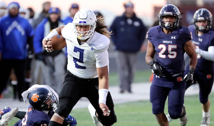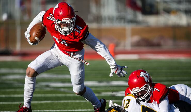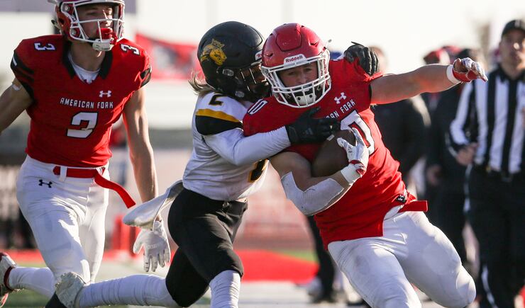 The Pioneers edged the Wildcats for the 5A state tournament win. Lehi quarterback Creyton Cooper threw a touchdown pass to Charles Jacob, while Carsen Manookin and Mckay Wall rushed for additional touchdowns.