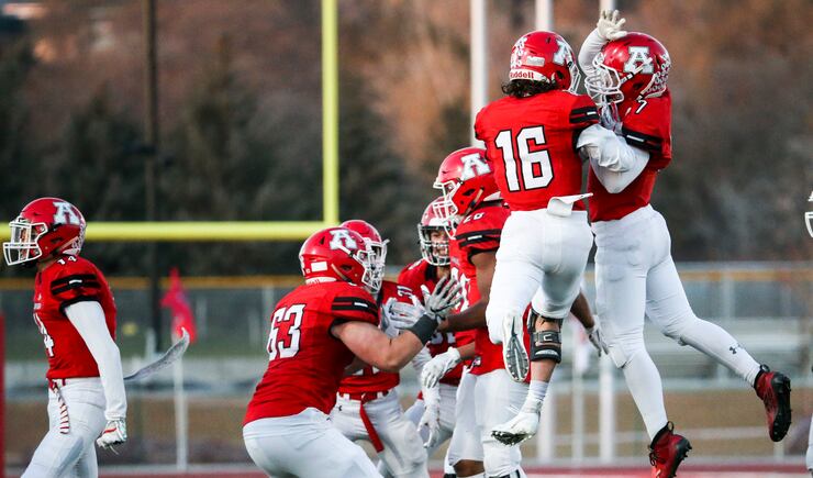Mason Falslev caught three of Kason Carlsen’s five touchdown passes for the Bobcats, who defeated Cedar Valley in the second round of the playoffs. Sky View, the classification’s second seed, host a quarterfinal matchup next week against the Mountain View Bruins.