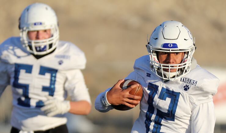 Olympus was dominant from start to finish in the win over Murray. Titans quarterback Frankie Goodson found Scotty Edwards for a pair of touchdown receptions, while Christian Peterson rushed for two touchdowns.