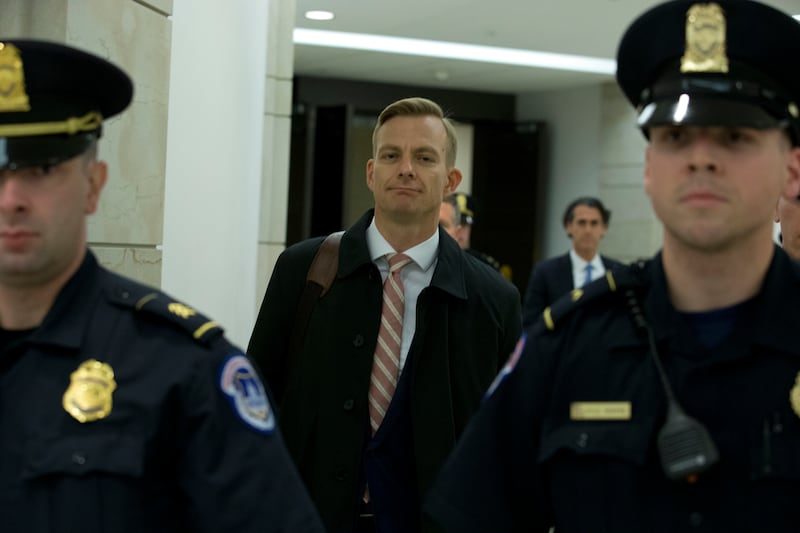 Holmes, a late addition to the schedule, testified that he came forward after overhearing Trump ask about “investigations” during a “colorful” phone call with Ambassador Gordon Sondland at a Kyiv restaurant this summer.