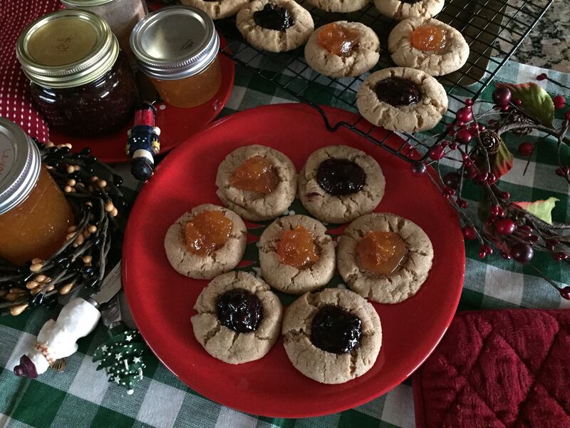 Like you, my heart and mind goes home for Christmas. Vintage peanut-butter-and-jam “print” cookies take me back to grade school parties, annual church bazaars and family baking. Most mothers had the basic ingredients on their kitchen shelf, and, with a little hands-on assembly, they could quickly whip up a batch. I have yet to meet anyone who did not like the taste of the ever-popular peanut butter and jam duo. Let’s face it, when you’re 10 years old, your cuisine preferences are perfectly simple.