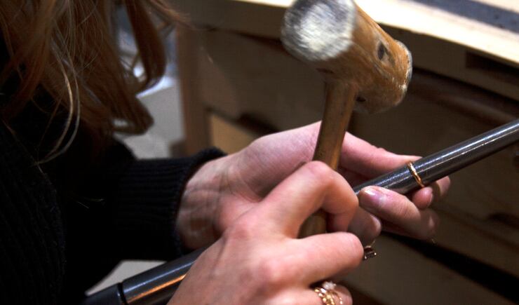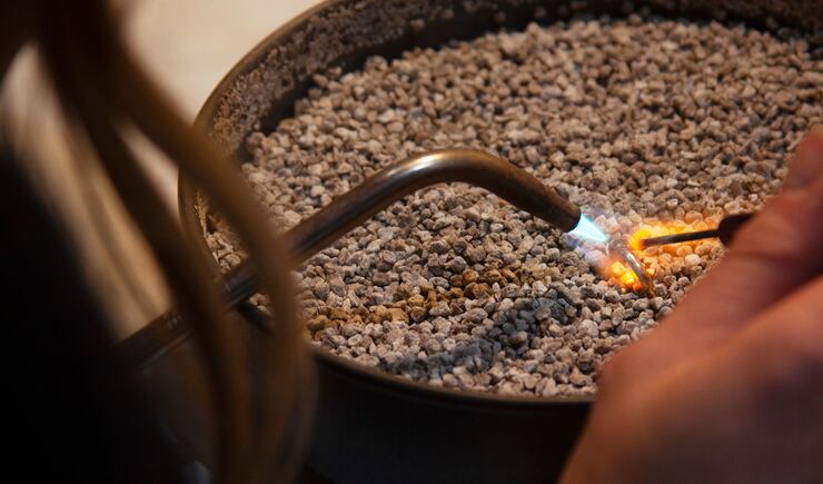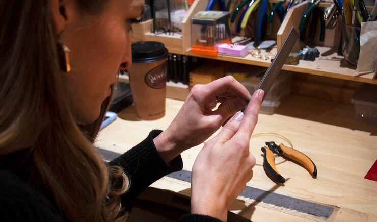 Every day, Hoggan and her production assistants fire up the torch and get to work. Setting up chemicals, cutting wire and soldering are all involved in this hands-on workshop. It all started years ago when she sold linocut prints, bath bombs and jewelry on Etsy as a creative outlet while she worked in real estate.