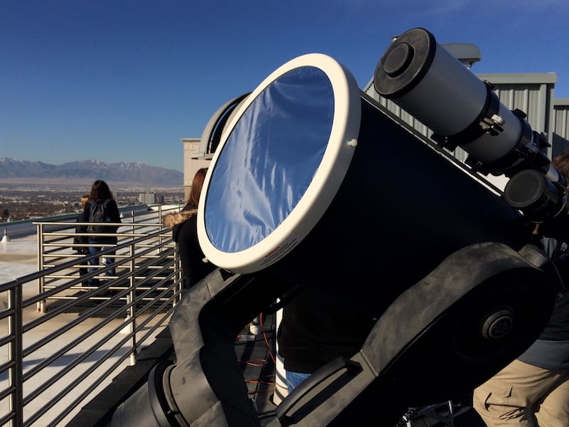 Hannah Blomgren, of Salt Lake City, peered into one of the eyepieces. “It’s pretty cool. I’m an astronomy major and it’s always fun to see these things,” she said.