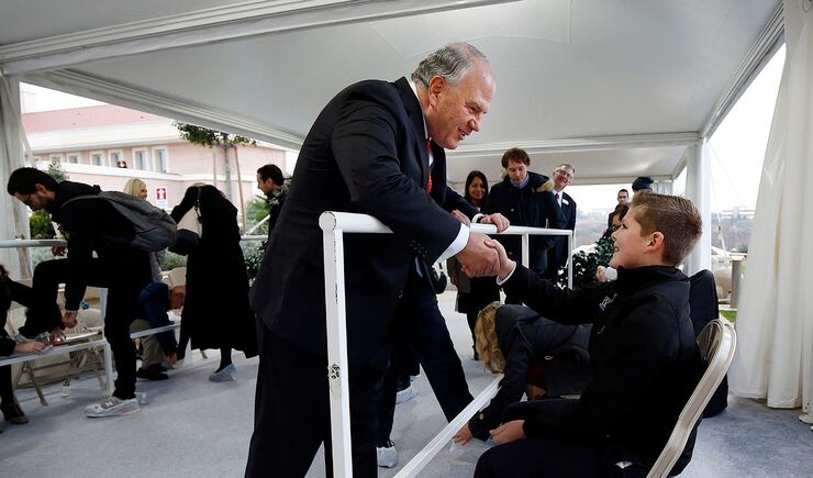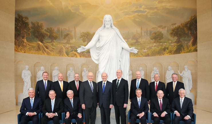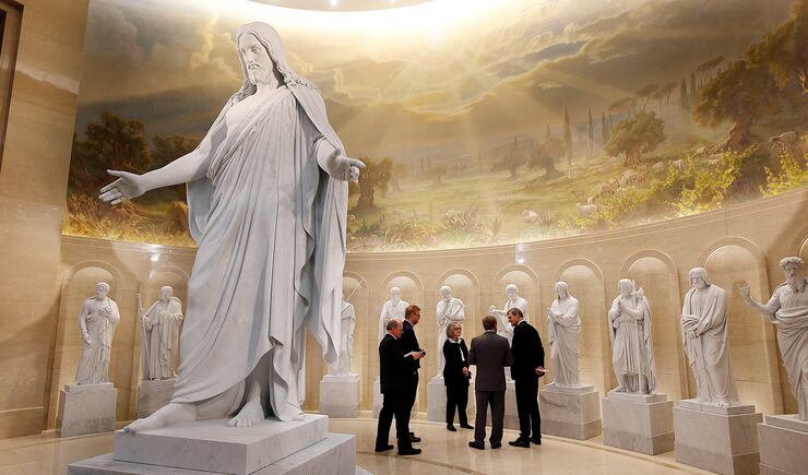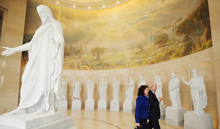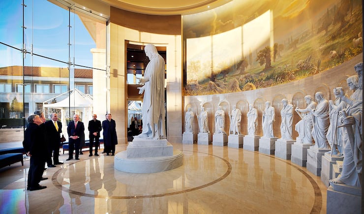 Nine years later in March 2019, President Russell M. Nelson presided at the dedication of the Rome Italy Temple. The trip included a formal audience with Pope Francis at the Vatican and an unprecedented gathering of the First Presidency and the Quorum of the Twelve Apostles outside of the United States, which included a one-of-a-kind photograph of the church leaders with the Christus and statues of the first apostles as a backdrop.
