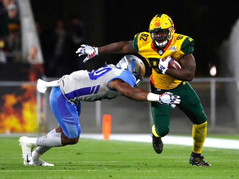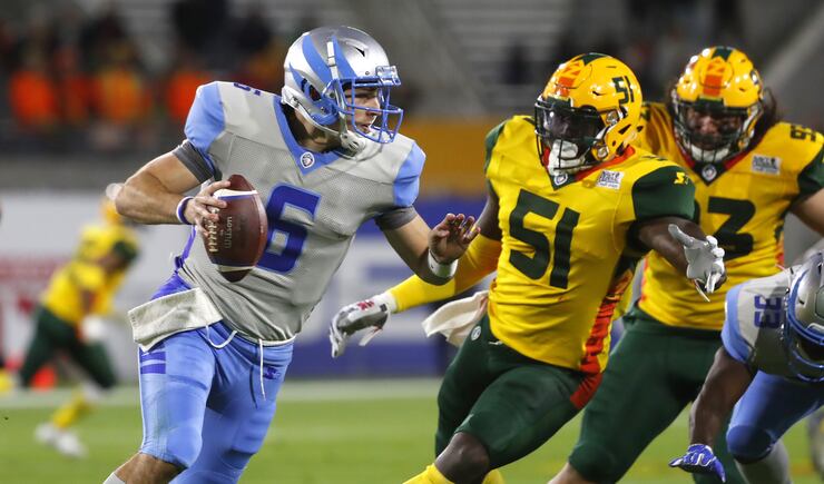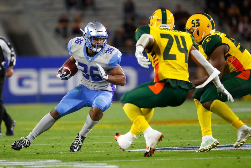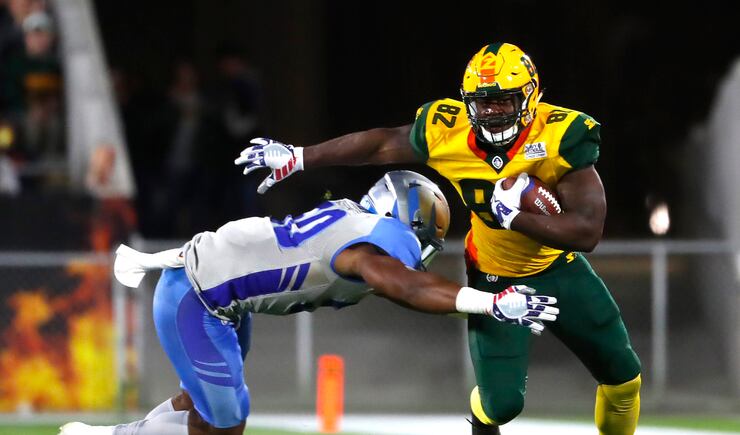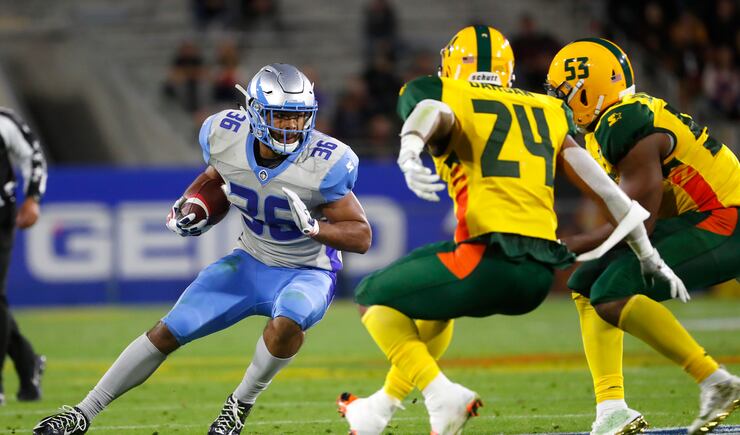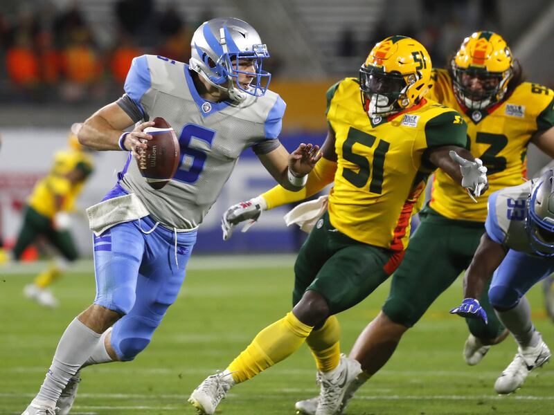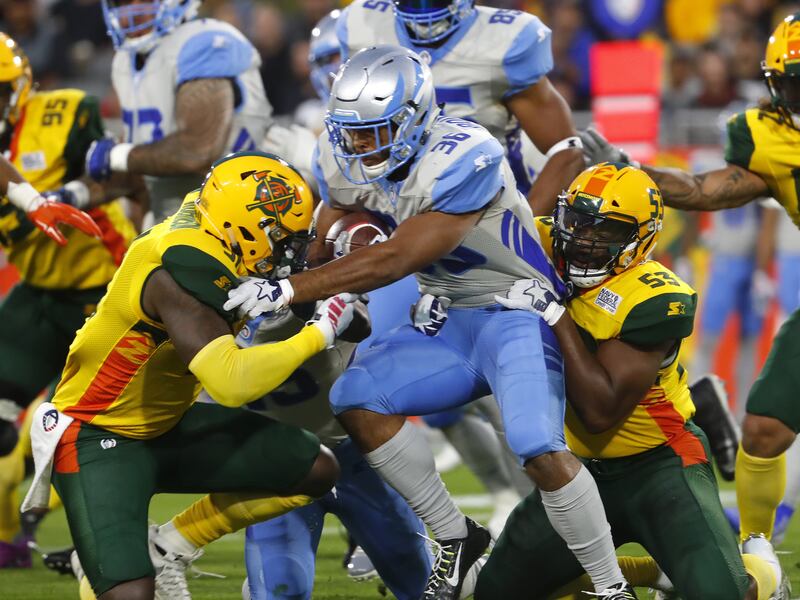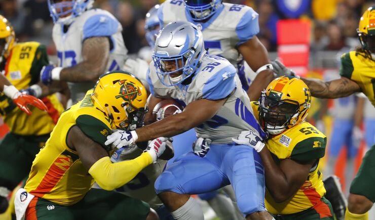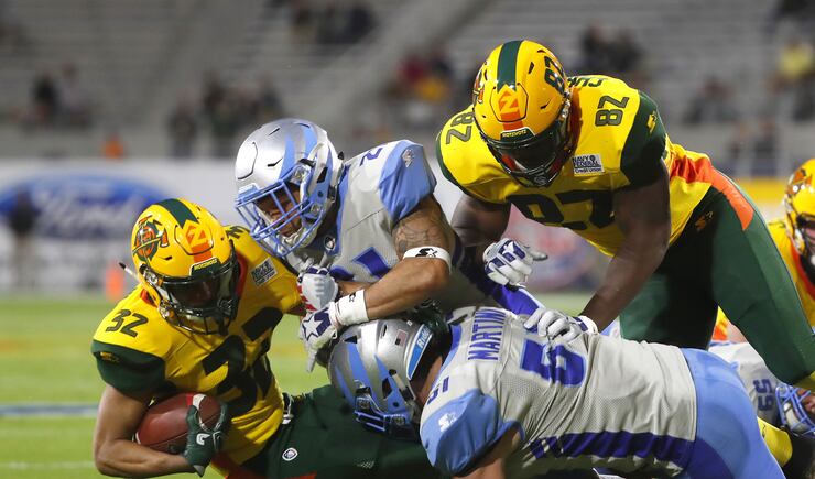 After both teams struggled to get going offensively early, Arizona used a 95-yard touchdown drive to get on the board and go ahead 8-0 with a two-point conversion, which are mandatory in the Alliance. The drive included Wolford — who threw for 275 yards and four touchdowns — hitting Ross for a 31-yard gain, and Pressley rushing for 25 yards on a play that set up a first and goal.