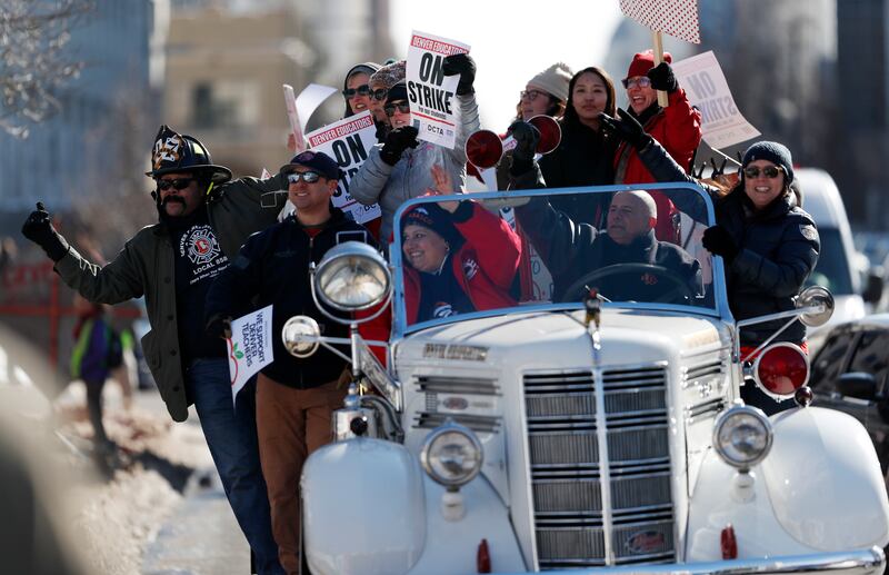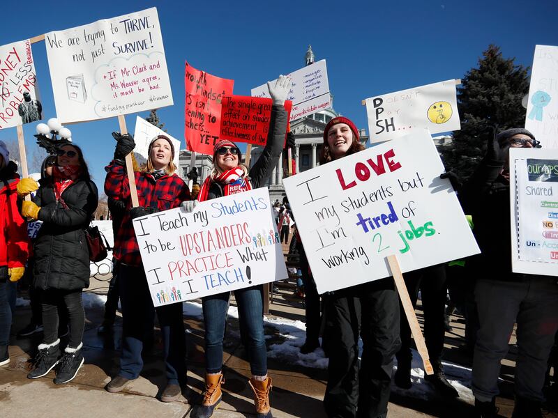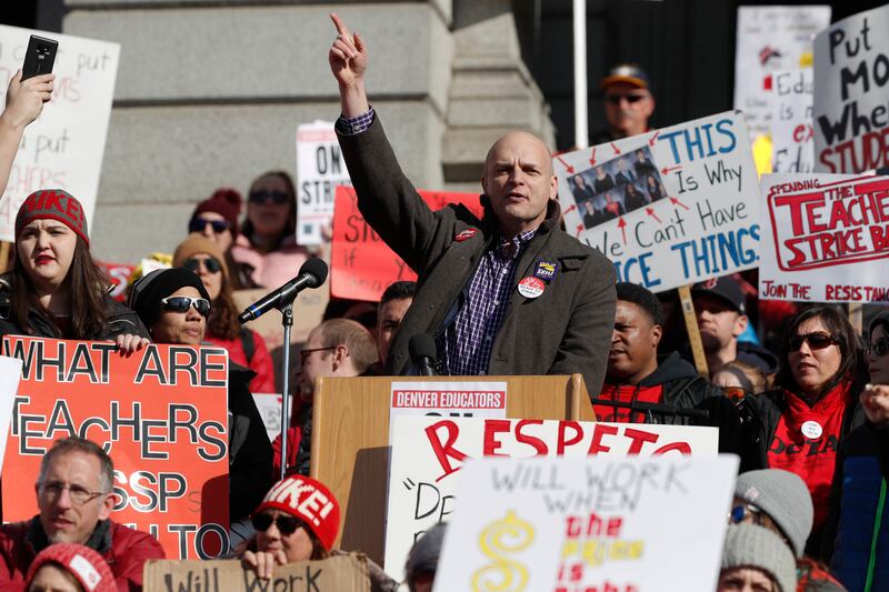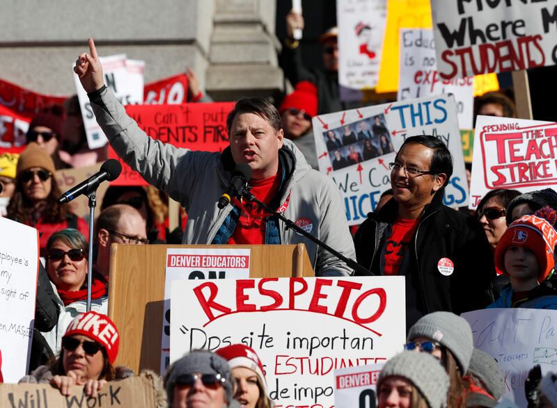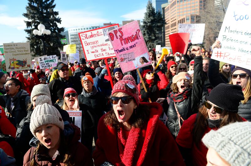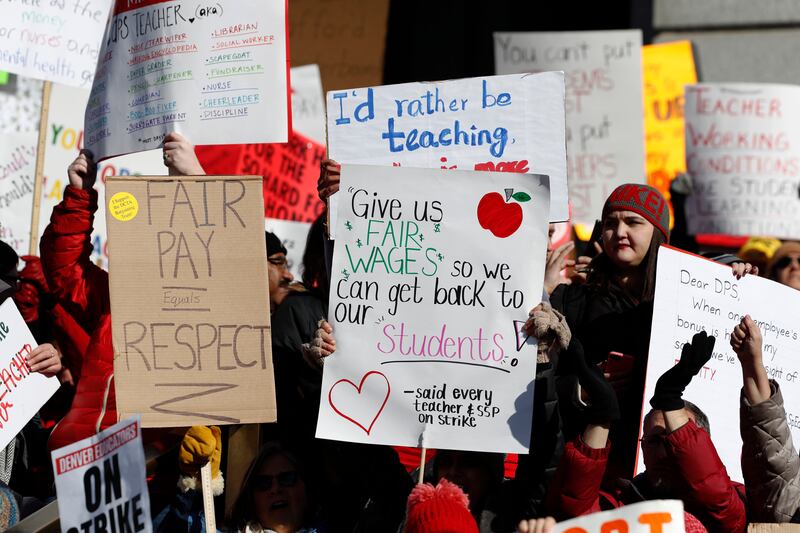 DENVER — Denver teachers and district leaders were trying to end a strike over pay Tuesday with the help of a federal negotiator.