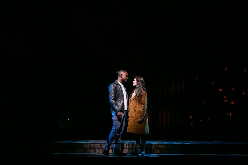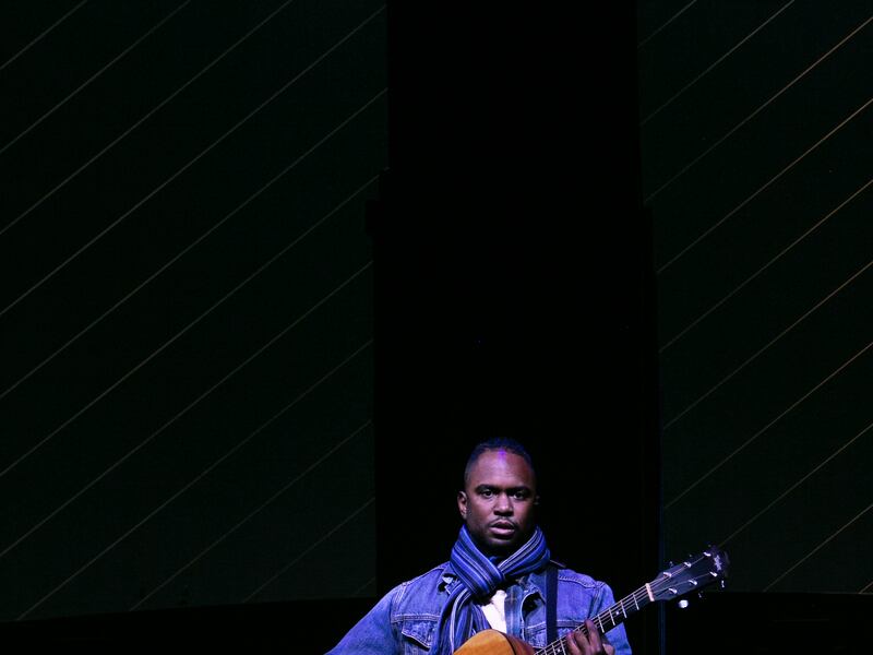 After a short ensemble scene, PTC's production opened on Friday night with Lawrence singing the solo number "Leave.” With nothing but his voice and guitar, he created an intimate and powerful feeling that captivated the entire theater. This song set the standard for his performance the entire night, as his raw and beautiful portrayal of a man close to giving up may have been the strongest performance of the show.